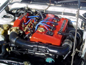 The Nissan FJ20ET engine has DOHC (double overhead camshaft) design with 16 valves (4 valves per cylinder), cast iron cylinder block and an aluminum cylinder head; five-bearing crankshaft. The engine is equipped with Multiport Fuel Injection system (4 x 375 cc/min fuel injectors), ignition system with a mechanical distributor and Garrett T3 turbocharger, since 1984 with intercooler.